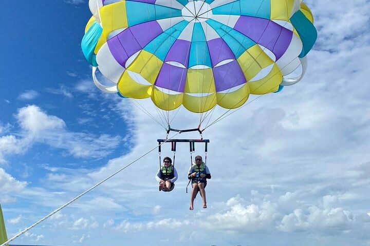 Then, take your adventure to the skies with our breathtaking Parasailing experience! Soar above the sea and enjoy panoramic views of the coastline, the islands, and the vibrant waters below. It's peaceful, thrilling, and the perfect moment for that once-in-a-lifetime photo!